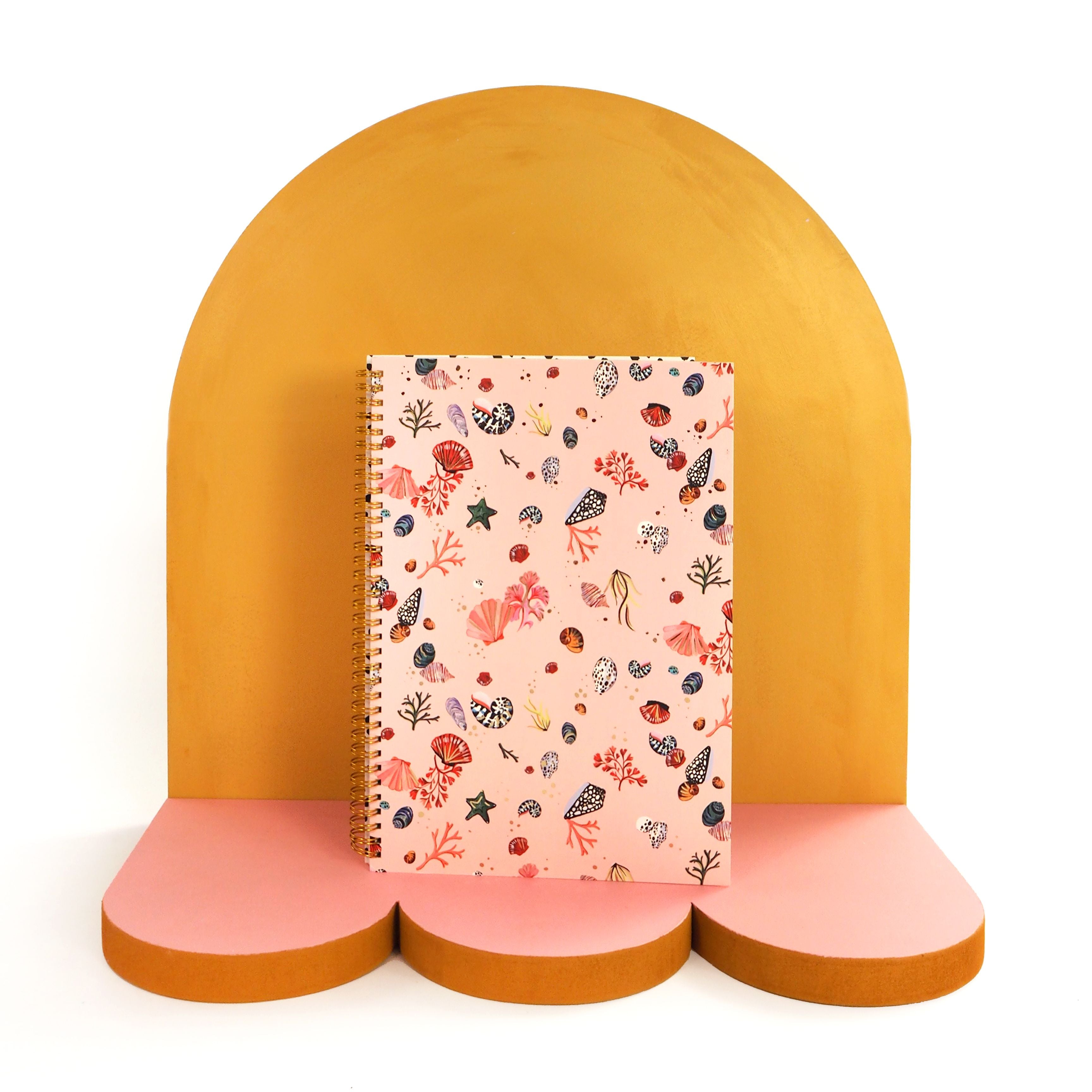 An A4 spiral bound notebook with lined pages designed in Eleanor Bowmer's distinctive style.