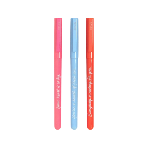 The world becomes a brighter place when the pen you’re writing with looks good. These have black ink, encouraging words, and a monochromatic design.