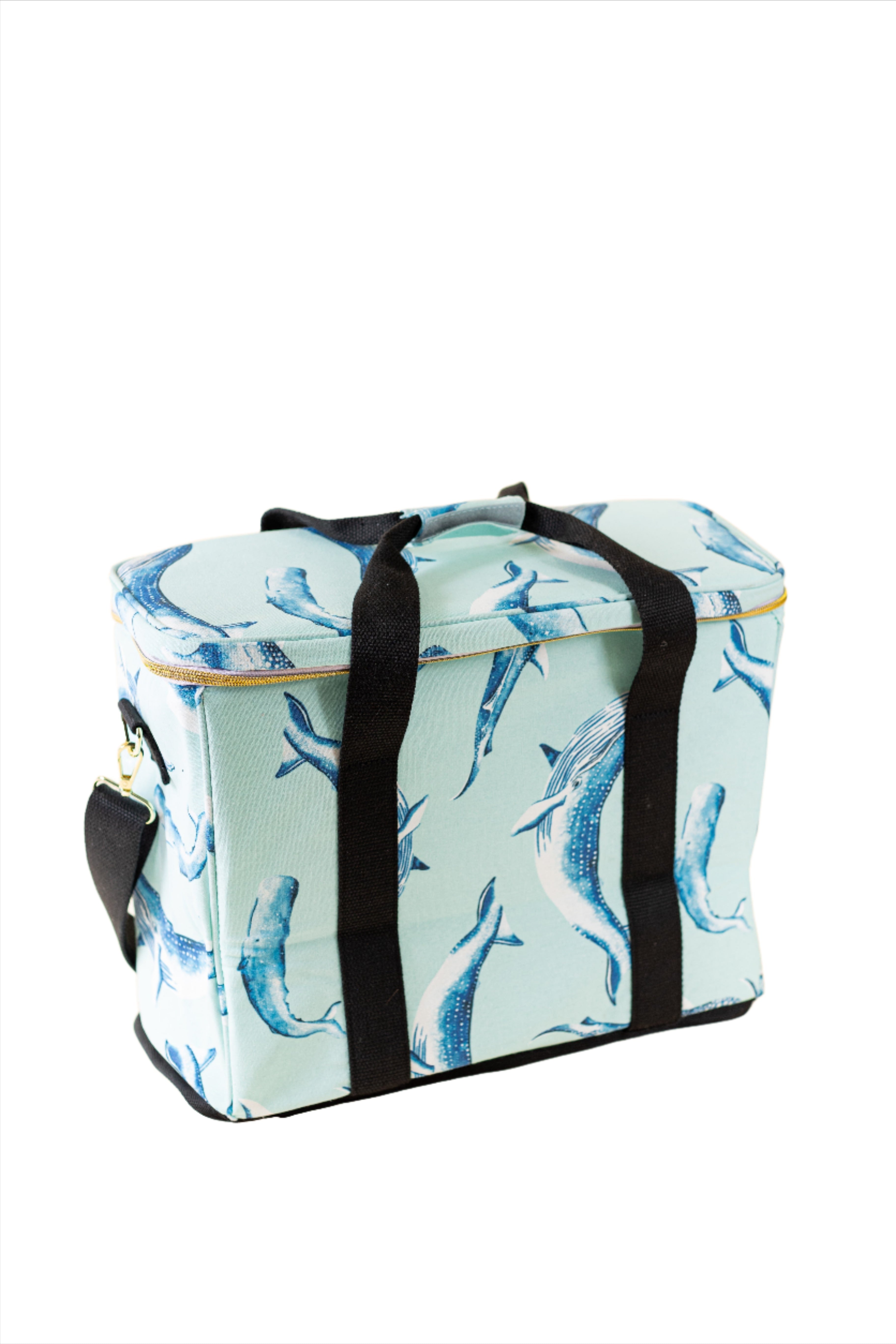 Take your picnic game to the next level with our sophisticated and elegant Yvonne Ellen Whale Cooler Bag. Not only is it lined with a wipe clean fabric to keep your food fresh and cool, but the blue whale fabric and gold zipper detail add a playful touch. Easily carry it with the two handy straps.