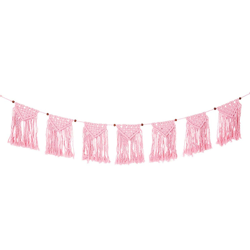 Made from 100% cotton with wooden beads, this pink macrame woven garland makes a stylish and colourful addition to your home décor. Simply hang this decoration on the wall, in the garden or across the ceiling to create a bohemian atmosphere that your guests will love.