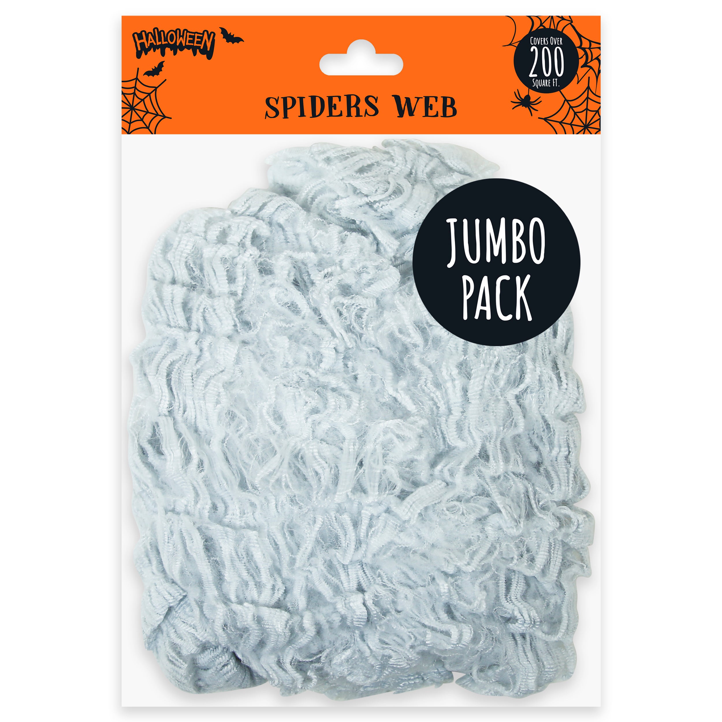 100g jumbo spider web packs, 48 per case, for spooky decoration.