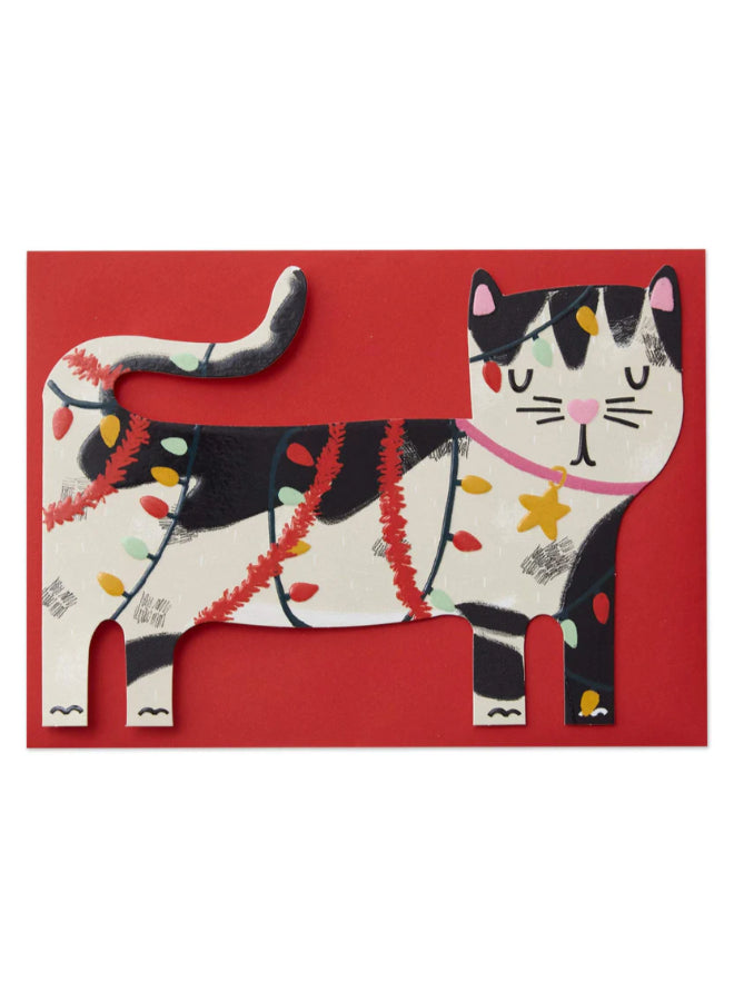 Black & White Cat - tangled lights