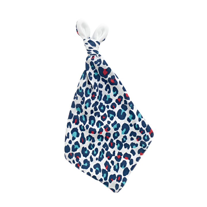 Super soft, super cute comforter in our stunning blue leopard print that your baby will want to keep in their hands and near their eyes. Babies not only love the clever pattern but will also fiddle with the adorable floppy ears with their soft strokable plush fabric, providing an additional sensory experience.