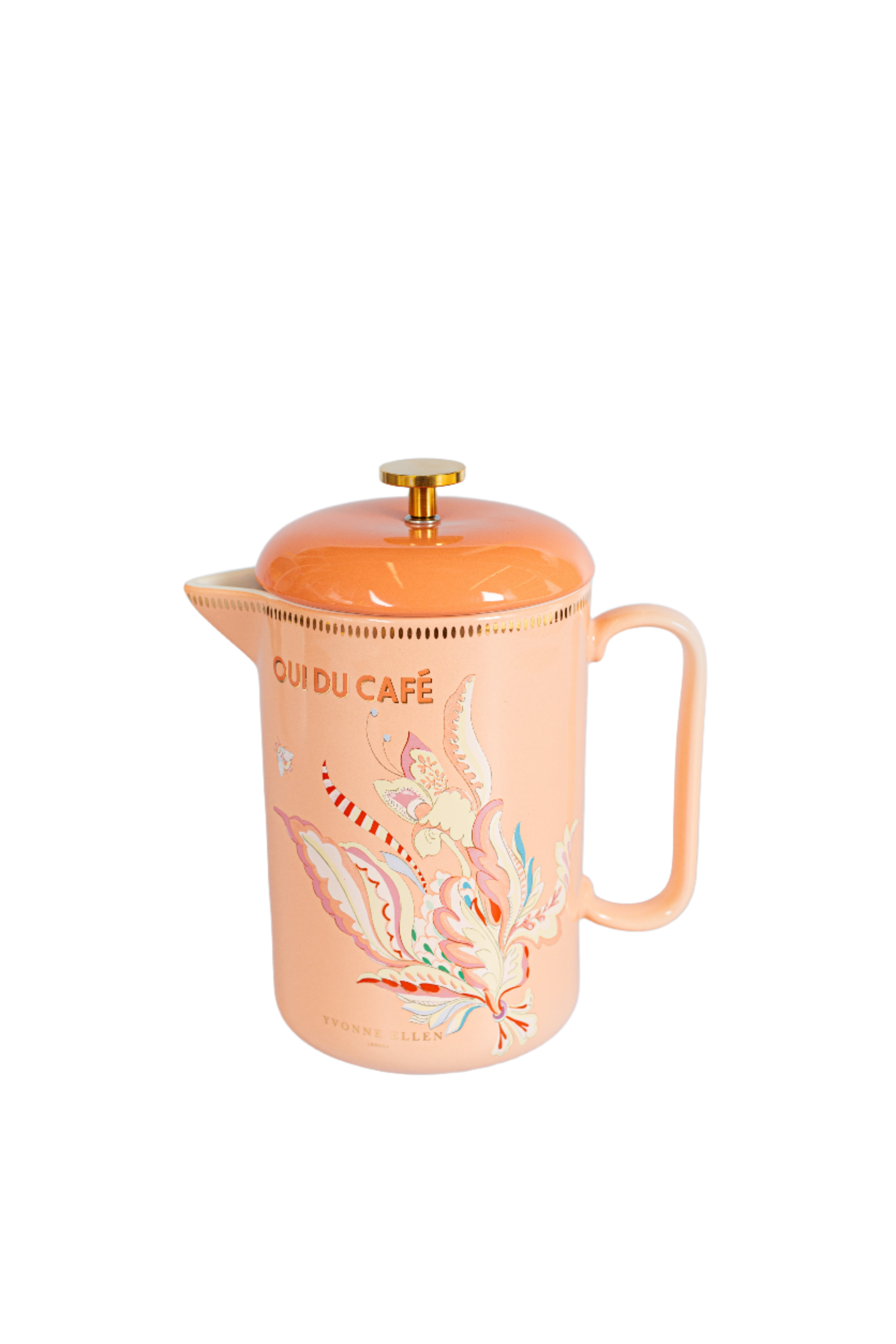 Brew your morning coffee with a touch of whimsy using the Yvonne Ellen Ceramic Cafetiere. With its quirky floral design and elegant gold detailing, it's sure to make your day (and your kitchen) a little brighter. Plus, it even comes with a fun slogan to keep you laughing while you caffeinate!