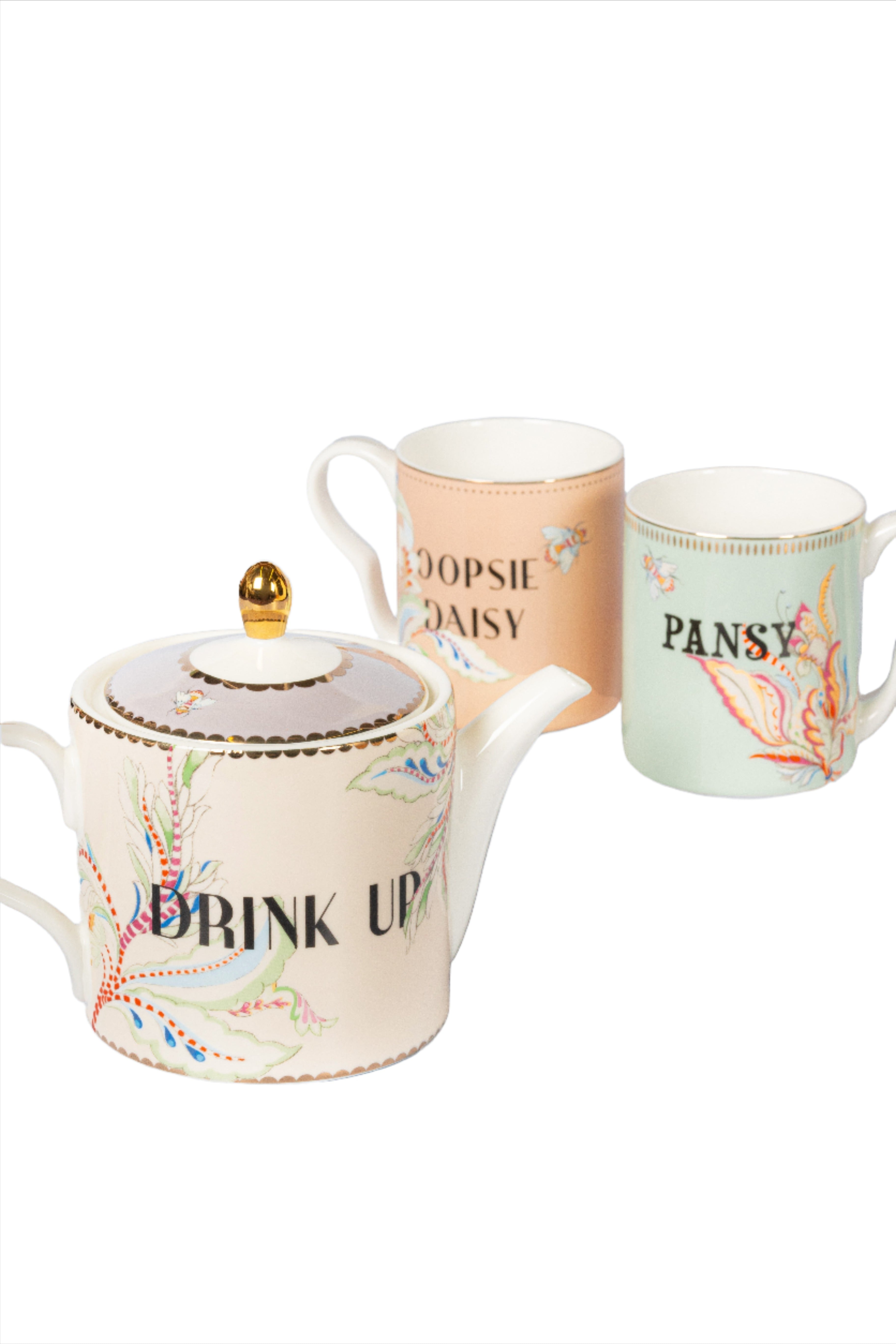 Add sophistication and whimsy to your hosting with the Yvonne Ellen Floral Teapot and 2 Small Mugs Set. Featuring a vintage design with gold accents and playful floral illustrations, this set from the new floral range is perfect for impressing your guests and adding elegance to any occasion.
