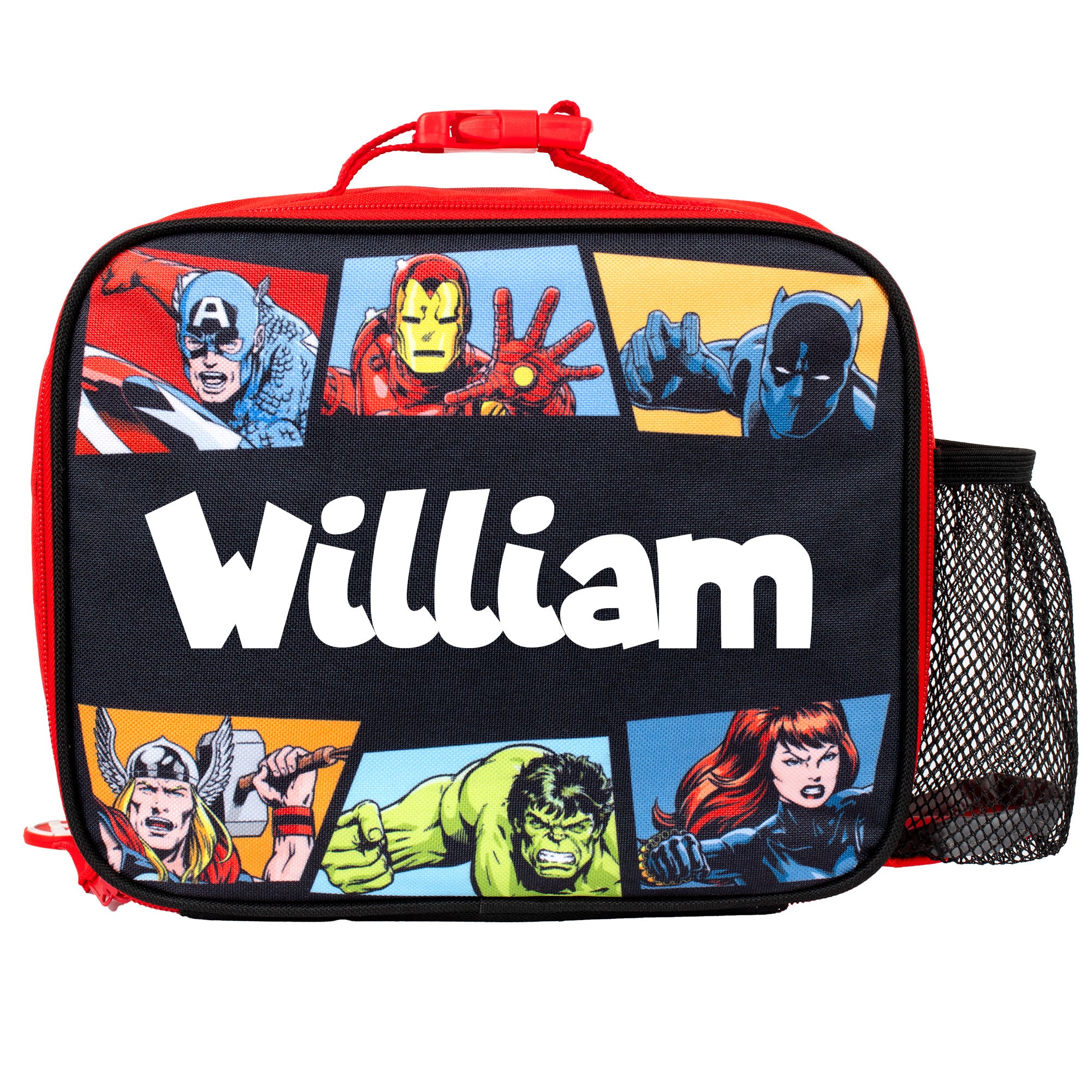 Official Personalised Marvel Merchandise: Customize with your child's name for a unique touch or gift idea! Perfect for school or nursery for any little superhero, this customised lunch bag stands out.