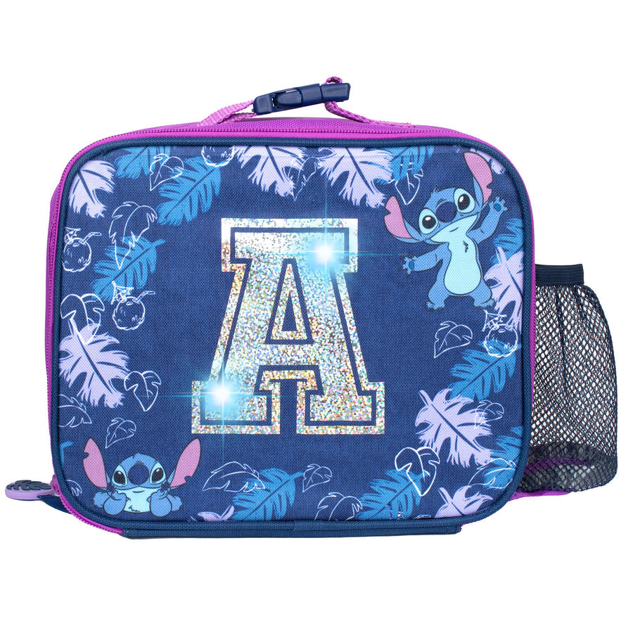 Official Personalised Disney Stitch Merchandise: Customize with your child's initial for a unique touch or gift idea! Perfect for school for any Girl, this customised lunch bag stands out.