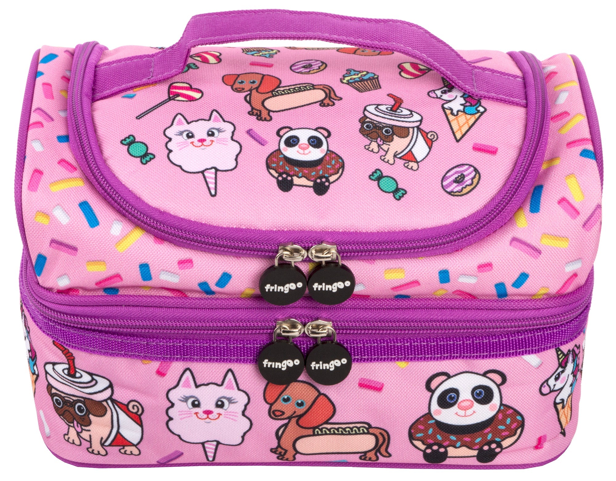 Animal treats kids character bag, is know for its hight quality finish. Each bag is equipped with durable polyester exterior, fully insulated, spacious interior and sturdy double zip colours on both compartments. The unique design displays vibrant coloured background, trendy food shaped characters, including panda, unicorn, cat, sausage dog, etc. Our large capacity lunch bags are best used as day to day food carriers for kids and adults attending nursery, school or work.