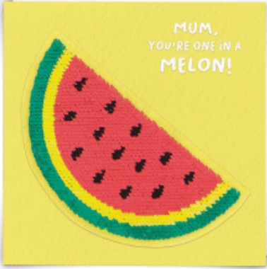 Mum You're One in a Melon Watermelon Sequin Greeting Card