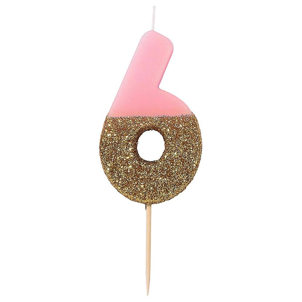 Pink Glitter Number Candle 6