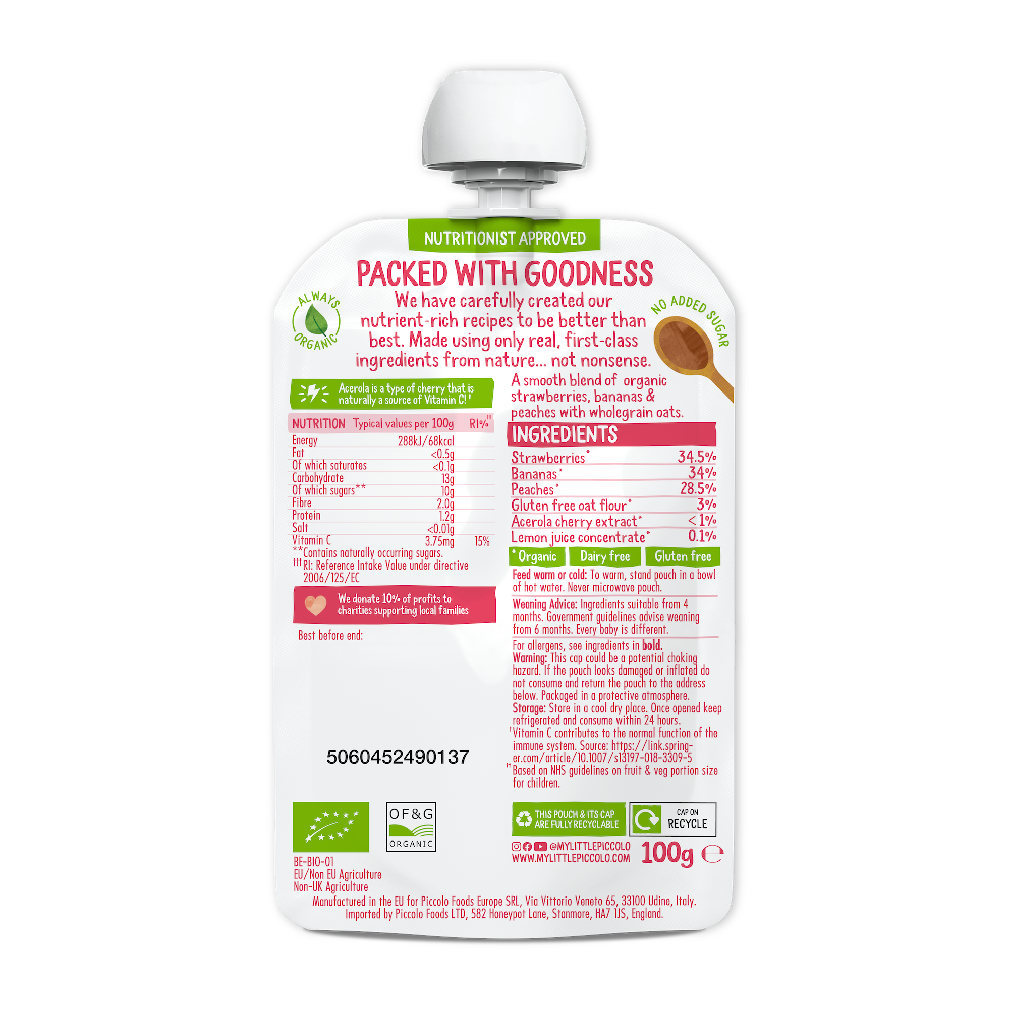 This delicious summer fruit recipe from the Piccolo family combines the sweet, fresh tastes of strawberries and peaches with a zingy hint of mint. A little banana swirled in makes a creamy, smooth puree.