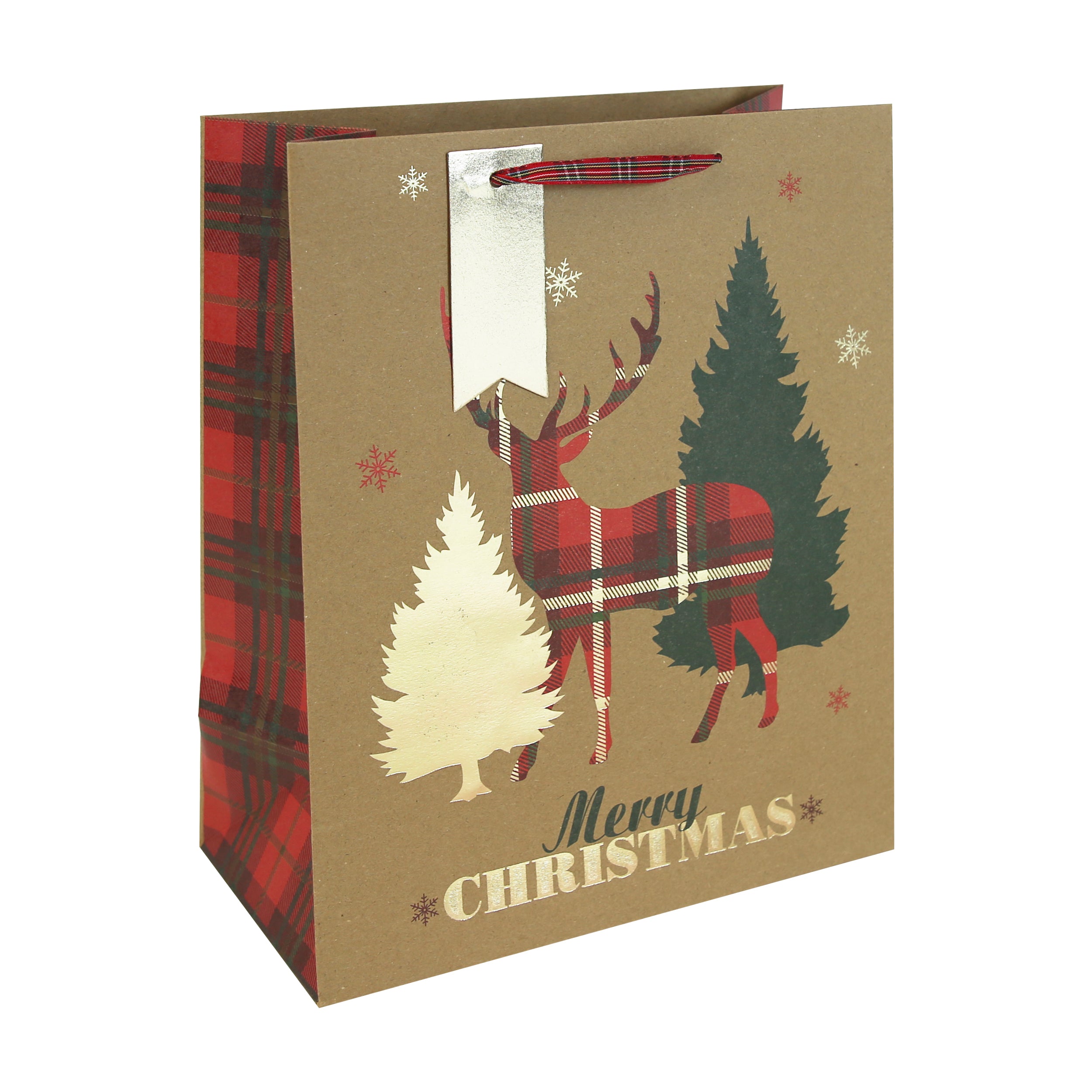 Tartan Stag Brn Kraft Large Bag