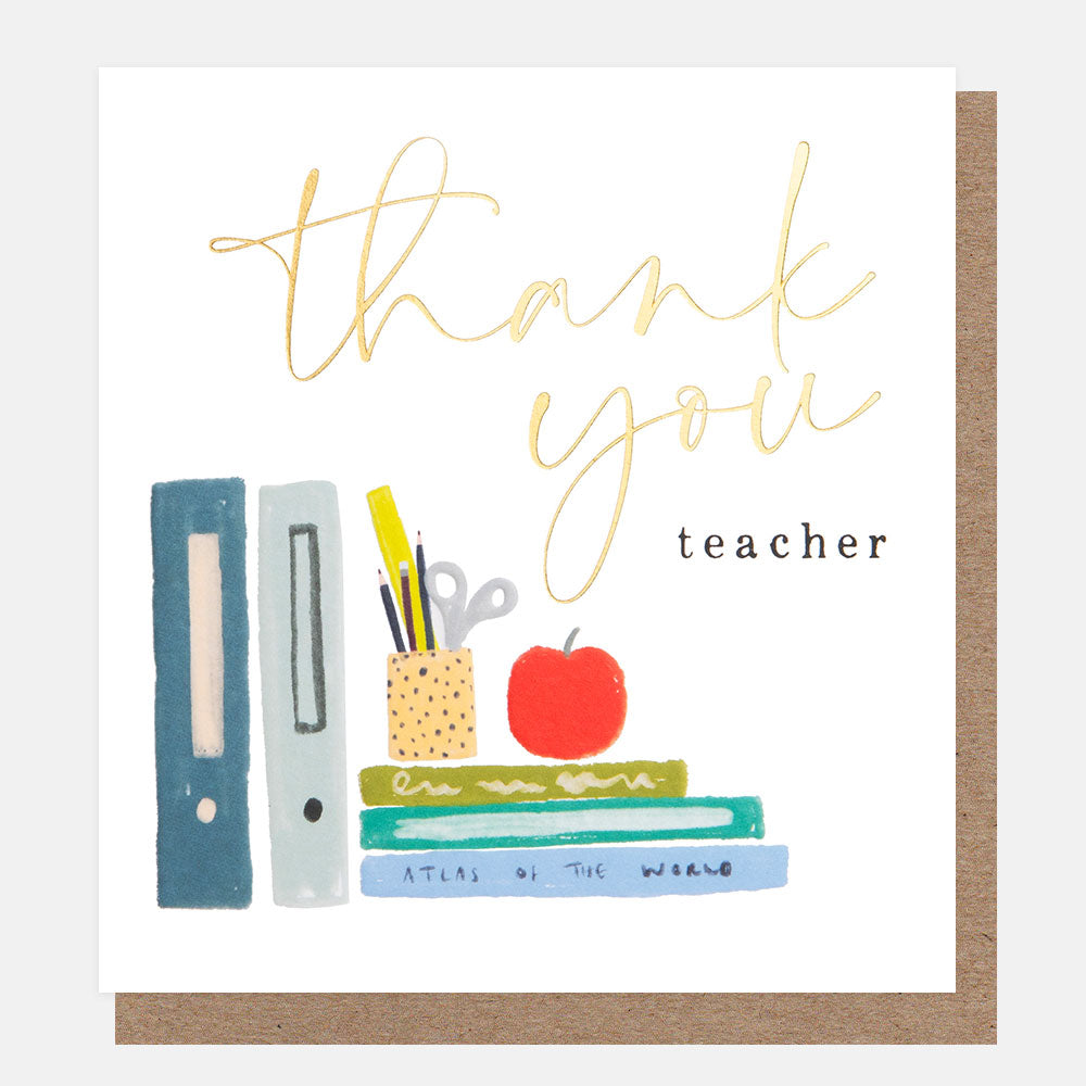 Thank You Teacher Books Pencils and Apple Greeting Card