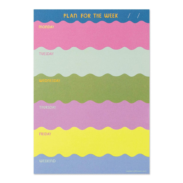 The perfect weekly planner pad for jotting down reminders for each day of the week and weekend. Seperated into colourful blocks the pad is as aesthetically pleasaing as it is useful! The daily planner pad is part of the 'Happiness' collection that is all about fabulous colour enthused stationery created to help clear minds and put pen to paper.