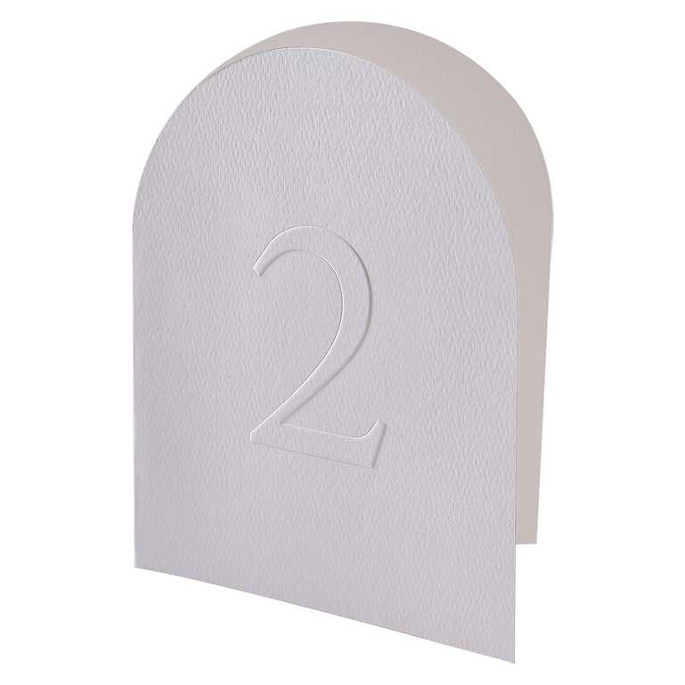 Make sure your guests know which table to sit at with these white embossed card table numbers. Allow your guests to be directed to their tables by the beautiful embossed numbers - the perfect detail for the perfect day! These stunning table numbers are folded in half, allowing them to be free-standing on each of your tables.