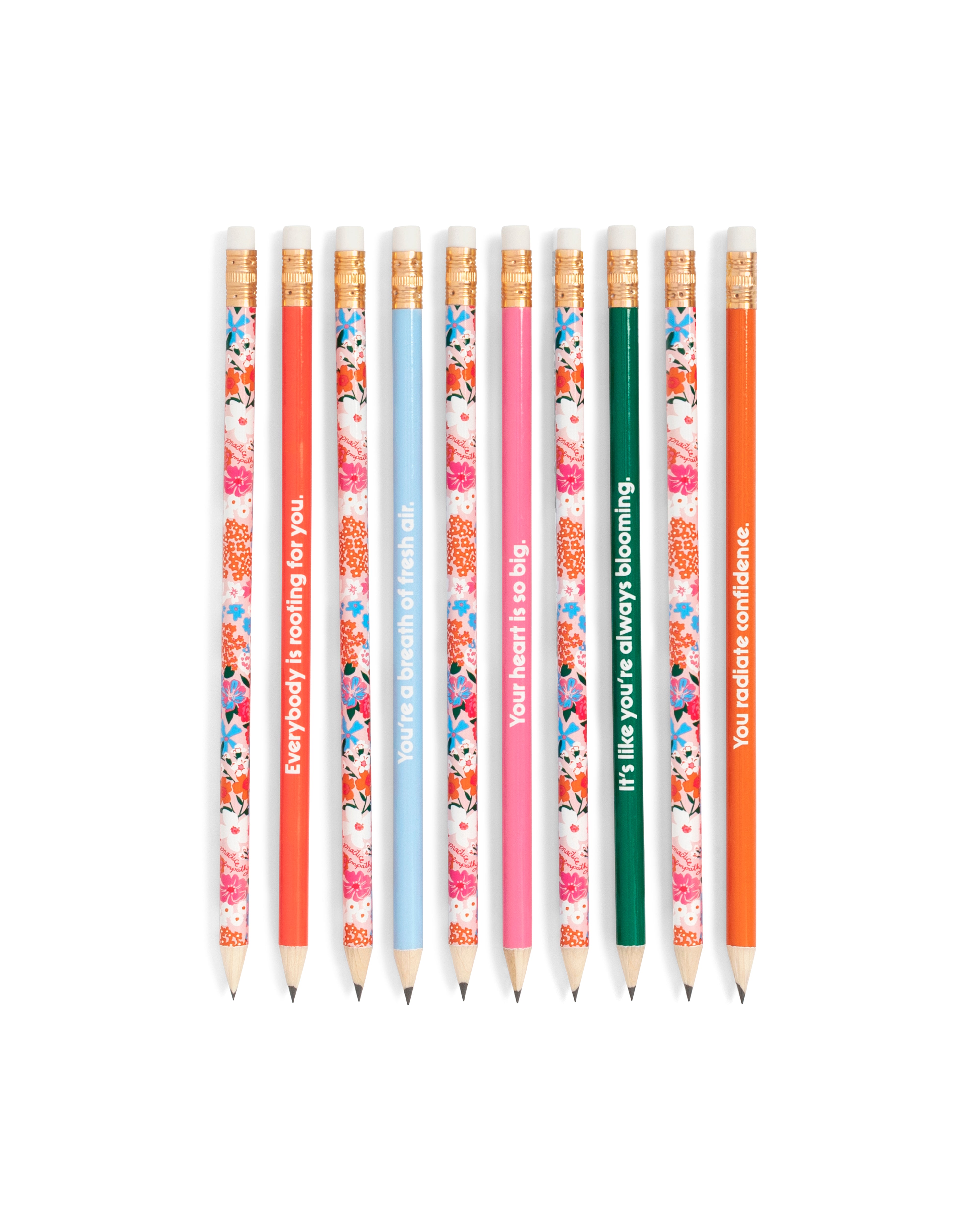 Because cute pencils are just more enjoyable. This set include ten pre-sharpened pencils—five covered in flowers and five that tell it like it is.