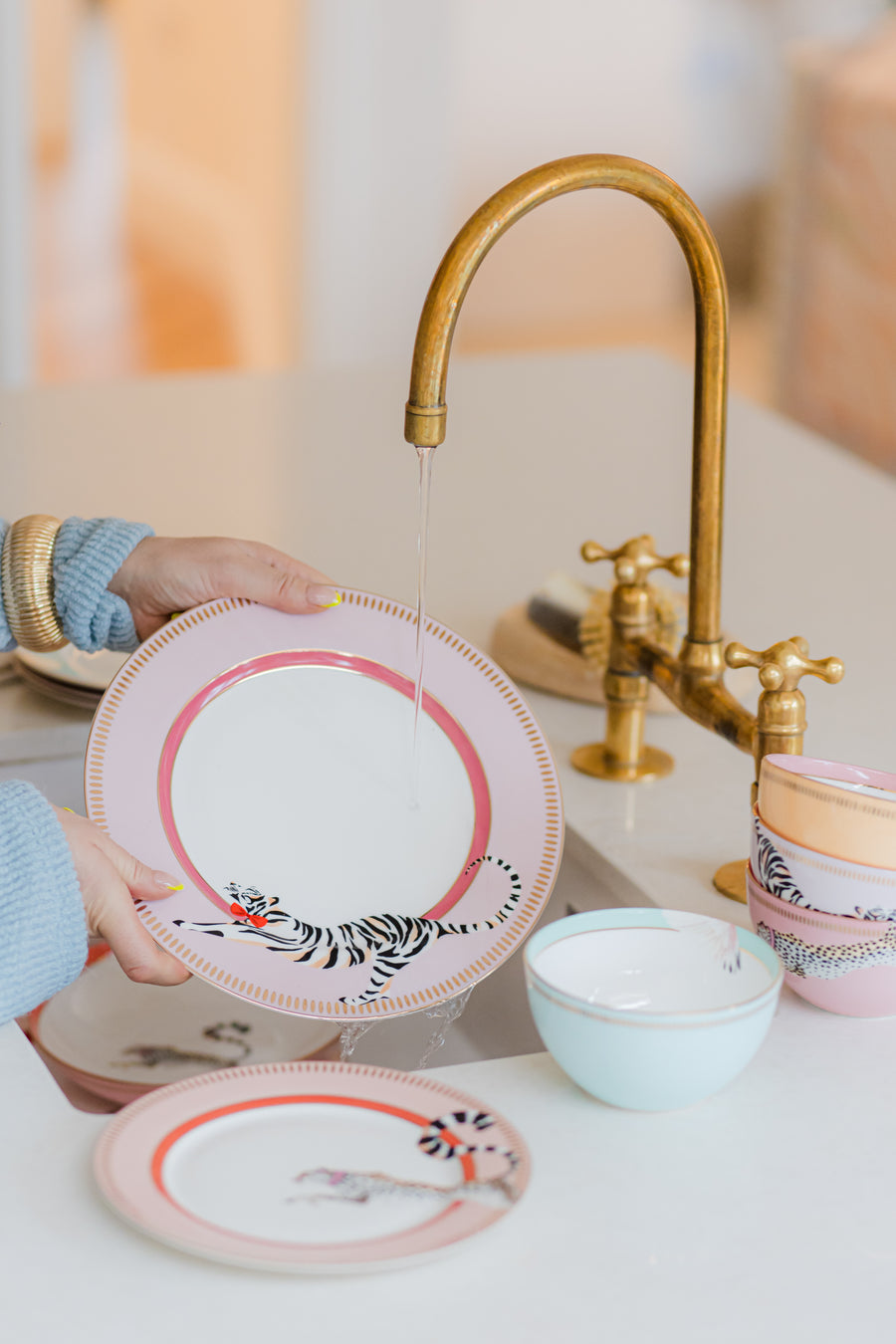 "This quirky set is the embodiment of the Yvonne Ellen style: animal life juxtaposed in original, colourful compositions. The pastel dinner plates are adorned with four of my iconic animals decorated with cutesy accessories. The gold details make this set perfect for adding a funky feel to your next dinner party!