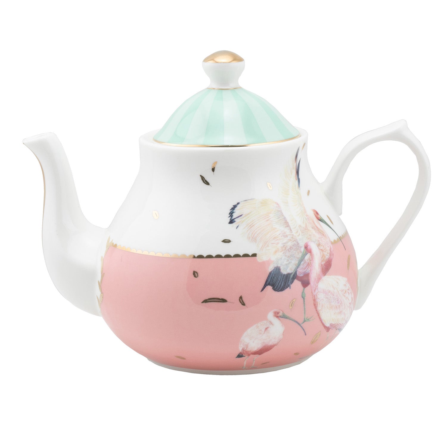 How amazing is this one of a kind Ibis Teapot with gilt gold detailing, powder pink colouring and striped lid. This traditionally shaped pot is the perfect size for 4 - 5 good cups of tea.